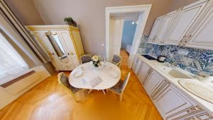 - Elegantní historický nábytek, dřevěné parkety a stylový design